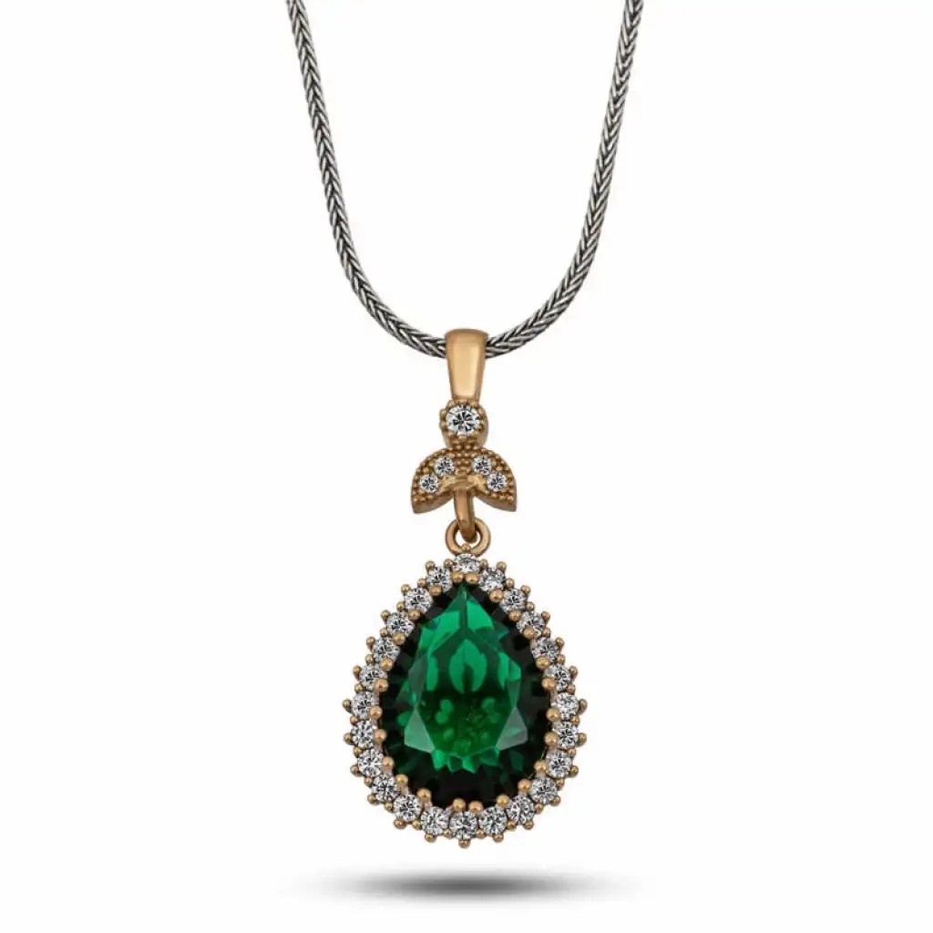 Gümüş Zümrüt Taşlı Hürrem Kadın Kolye