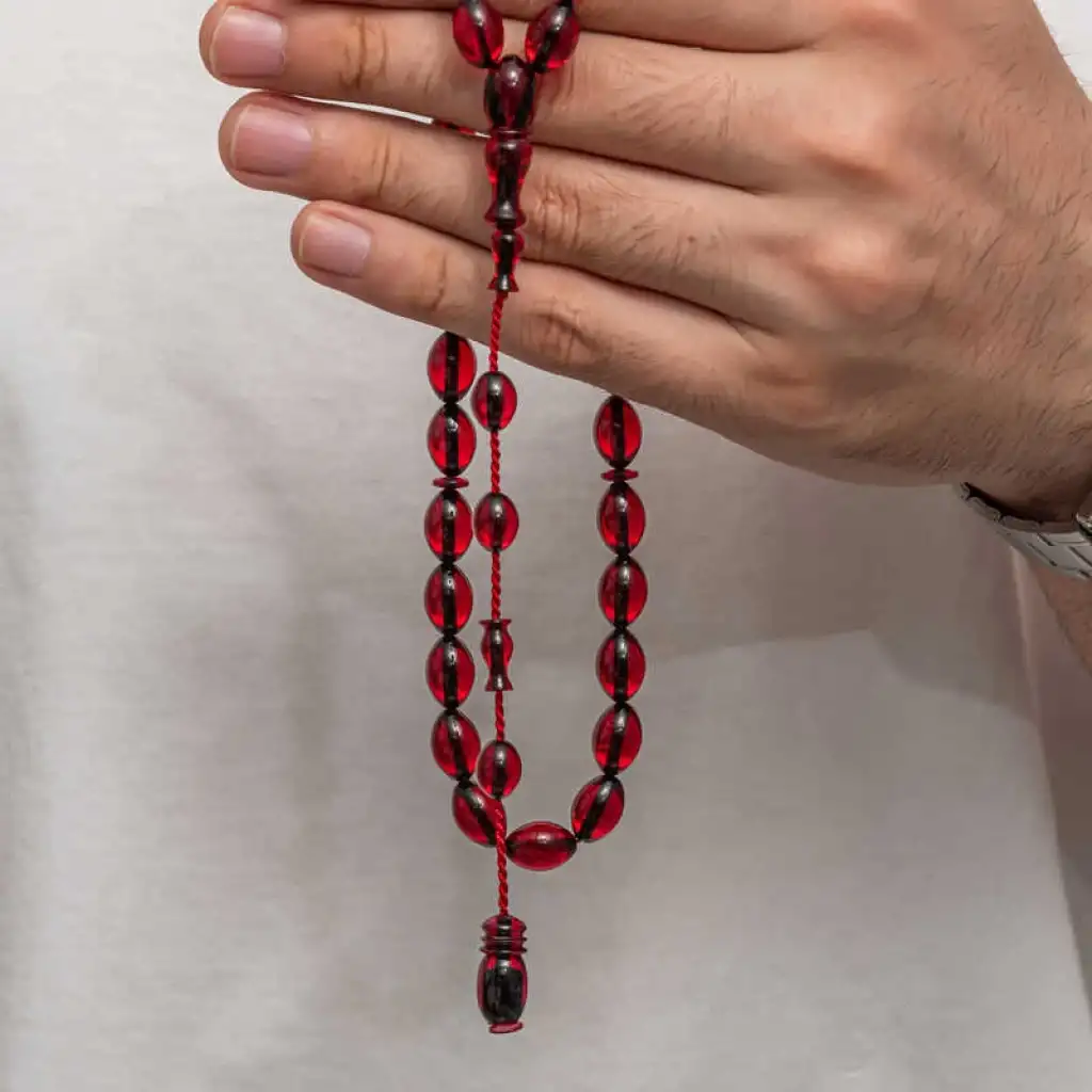 Kehribar, çam ağacı reçinesinin toprak altında uzun yıllar boyunca birikerek oluşan bir maddedir. Hemen hemen taş ile aynı sertliktedir fakat yoğunluğu düşüktür. Çam kokusu yayar. Oluşumu uzun zaman aldığından ve yapay olarak yapılamadığından değerli bir maddedir. Sıkma kehribar ise kehribar taşından farklı olarak onun özelliklerini taşıyan, görüntü itibariyle ona benzeyen fakat gerçek olmayan bir malzemedir. Ülkemizde ve dünyanın bir çok yerinde kehribar taşından çeşitli malzemeler üretilmiştir. Ülkemizde en yaygın olarak tesbih üretilmektedir. Kehribar tesbihler elde ısındıkça kehribar benzeri bir koku verir ve renk değiştirir. Bir çok rengi vardır. Hatta iki rengin birleşiminden oluşan kehribar tesbih modelleri de vardır.Ülkemizin güzide tesbih ustaları bu malzemeyi sıklıkla işlemek suretiyle çeşitli sanat eserleri meydana getirirler. Bu tesbihler de koleksiyonerler tarafından alınıp satılmaktadır. Sıkma kehribar tesbih modeli de günlük hayatta kullanılabilecek çok şık bir tesbih çeşididir. Özel günlerin vazgeçilmez hediyesi sıkma kehribar tesbihler erkekler için doğum günü, sevgililer günü ve babalar günü gibi özel zamanlarda hediye olarak tercih edilebilir.Sıkma kehribar tesbih modeli diğer kehribar tesbih modellerinde olduğu gibi tamamen el emeği ile imal edilmiştir.