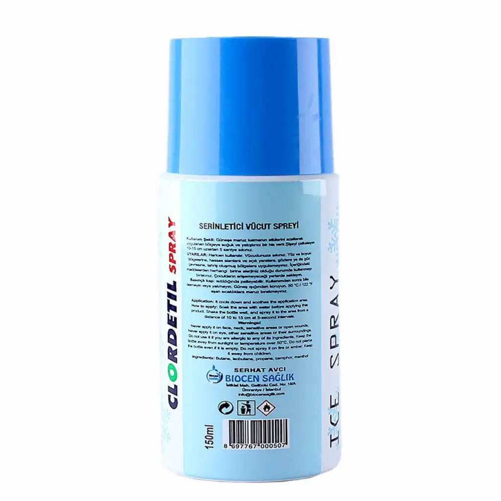 Soğutucu sprey nedir? Yüksek basınç ile sıvılaştırılmış gazlardan imal edilen Soğutucu sprey, uygulandığı vücut bölümünde cilt ısısını hızla düşürerek tedavi amaçlı kullanıma uygundur. Soğutucu sprey uygulanması Tüp içinde sıvılaştırılmış gaz sıkıldığı bölgede cilt üzerine sıvı şekilde yayılır. Kaynama ısısı düşük olan sıvılaştırılmış gaz, uygulandığı bölgede cildin ısısı ile hızla gaz haline geçer ve bu geçiş esnasında cildin ısısını alır. Böylece uygulandığı bölgede cilt ısısı 30-32 dereceden 10-15 dereceye kadar iner. Aşırı soğuğun etkisi ile sinir uçlarının uyarılabilirliği düşer ve ciltten kaynaklanan olaylara bağlı oluşan ağrı kişi tarafından azalmış olarak hissedilir. Bu yüzden soğuk spreyler yüzeysel anestezikler olarak da adlandırılırlar. Ayrıca soğuğun etkisi ile o bölgede cilt ve cilt altı damarları büzülür. Böylece özellikle travmatik durumlarda o bölgede ödem oluşumu engellenir . Bu etki ağrı kesici etkisinden daha önemlidir. Soğutucu sprey hangi durumlarda kullanılmaktadır? Soğutucu spreyler öncelikle akut travmatik durumlarda kullanılmaktadır. Özellikle sportif aktiviteler sırasında oluşan burkulma, çarpma, ezilme ve benzeri durumlarda son derece yaygın olarak kullanılmaktadır. Ayrıca küçük cerrahi girişimlerde ve enjeksiyonlar öncesi yüzeysel anestezi sağlamak içinde sıkça kullanılmaktadırlar. Özellikle eklem enjeksiyonlarında iğnenin acısını azaltmak için kullanılmaktadır. Ayrıca fizik tedavi uygulamalarında özellikle myofasial ağrı sendromunda kas germesi ile beraber etkin bir şekilde kullanılmaktadır. Soğutucu sprey ne zaman kullanılır? Soğutucu spreyler acil durumda etkilenen vücut bölümüne hemen uygulanmalıdır. Olayın üzerinden uzun zaman geçerse etkili olmazlar. Clordetıl soğutucu sprey nasıl kullanılır? Clordetıl soğutucu sprey travmadan etkilenen bölgeye yada yüzeysel anestezi istenen vücut bölümüne yaklaşık 5-10 cm uzaktan sıkılarak kullanılır. Sıkılan vücut bölümünde diğer soğutucu spreylerde olduğu gibi soğuk yanığı yapmaz bu sebepten rakiplerine göre daha güvenlidir. Clordetıl spreyin diğer soğutuculardan farkları nelerdir? Clordetıl sprey Doğayla barışık gazlardan üretilmiştir. Bu gazlar etil klorürden farklı olarak vücuda direk toksik değillerdir. Etil klorür içermez. Clordetıl sprey ozon tabakasına zarar vermez.Içerdiği 150 ml lik tüpü sayesinde uzun süreli ve çoklu kullanıma imkan verir. Clordetıl sprey * soğuk yanığı yapmaz. * dört mevsimde de stok problemi yaşanmaz. %100 yerli üretimi olup çevre dostudur. * ethil klor içermez.