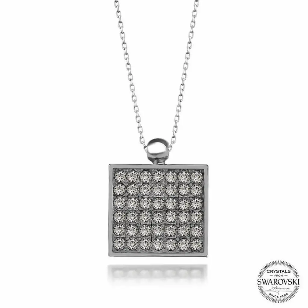 Swarovski Crystal Taşlı Kare Gümüş Kadın Kolye