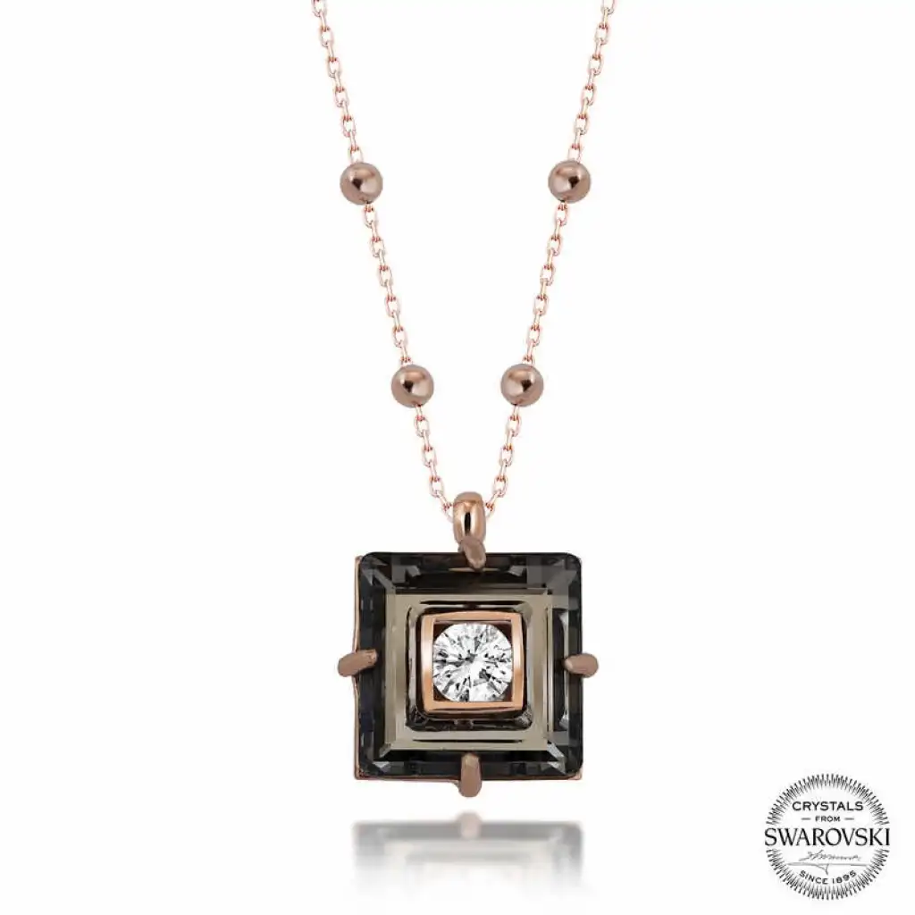Swarovski Crystal Taşlı Rose Top Zincir Siyah Elmas Gümüş Kadın Kolye