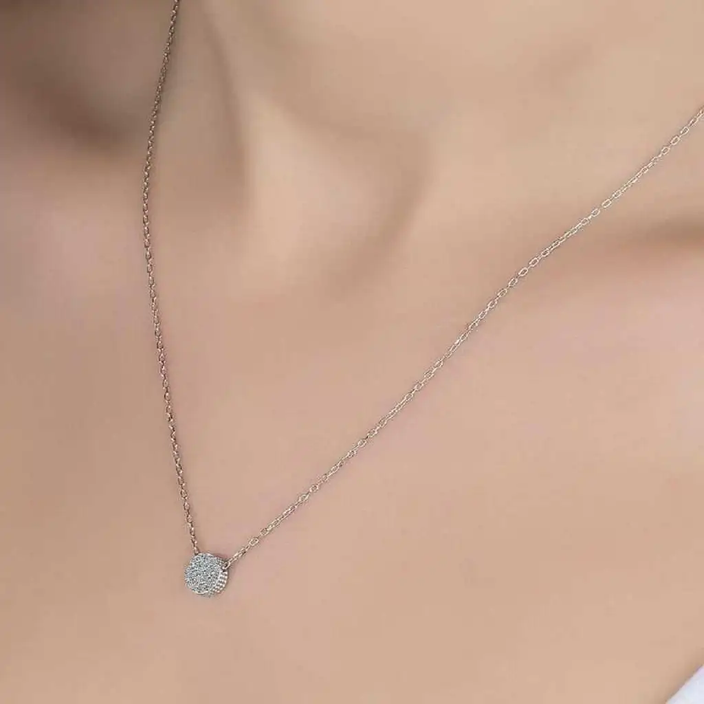 Swarovski Taşlı Çember Gümüş Bayan Kolye