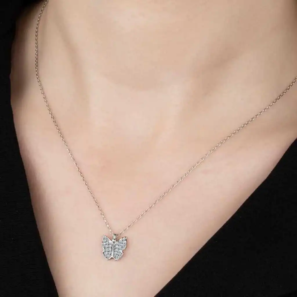 Swarovski Taşlı Kelebek Gümüş Bayan Kolye