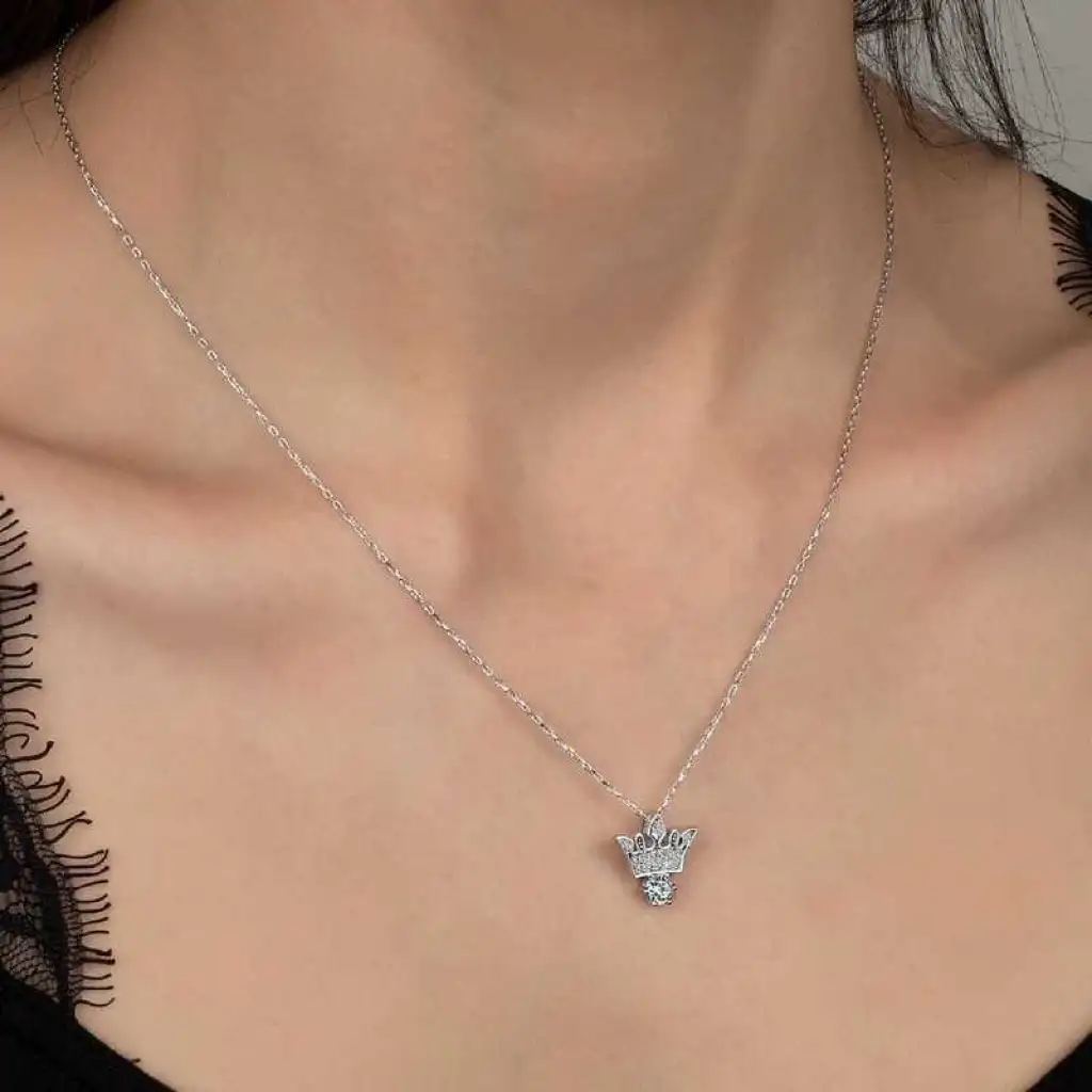 Swarovski Taşlı Gümüş Kral Tacı Tektaş Bayan Kolye