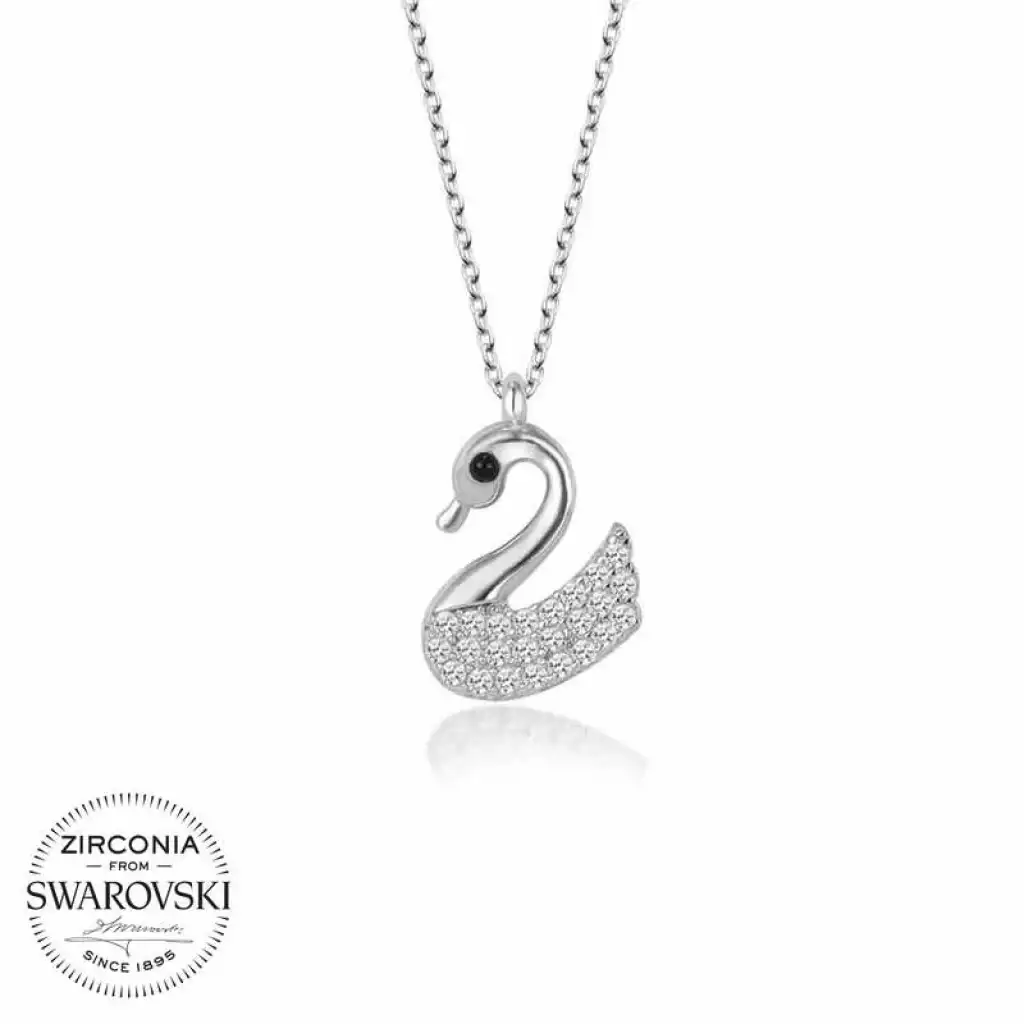 Swarovski Taşlı Gümüş Kuğu Bayan Kolye