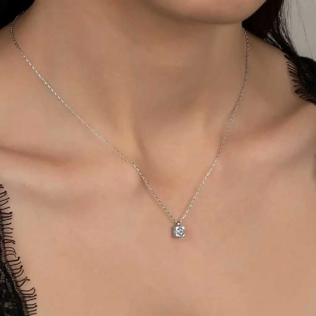 Swarovski Taşlı Tektaş Gümüş Bayan Kolye
