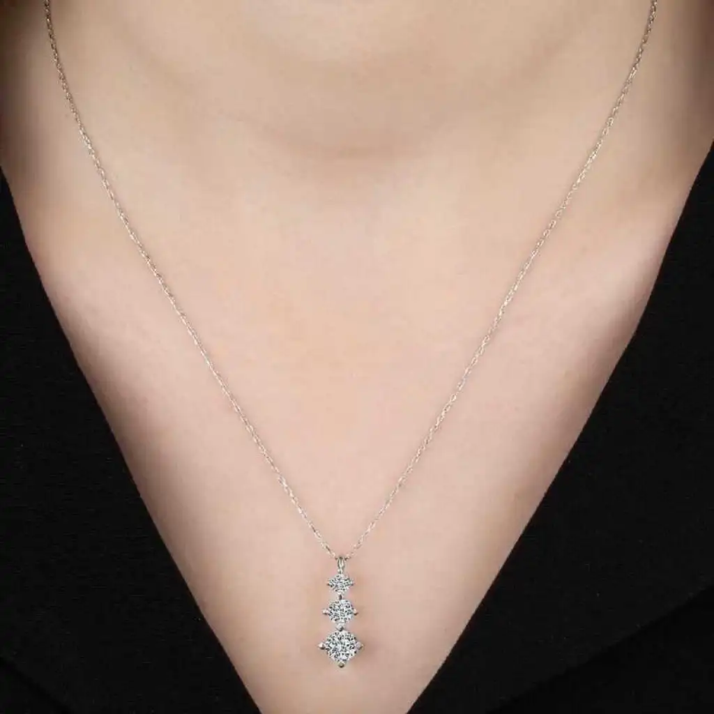 Swarovski Taşlı Gümüş Üçtaş Tektaş Bayan Kolye